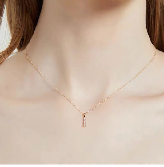 Pure 18K Gold with Diamonds Mini Straight Stick Pendant Au750 Chain