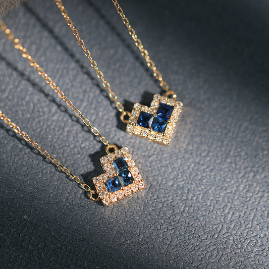 HAUTESS Handmade Natural Sapphire & Diamond withPure 18K Gold Heart Necklace Chain