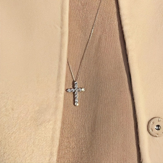 HAUTESS 18K White Gold 1.1ct Total Natural Diamond Cross necklace Pendant for Womens