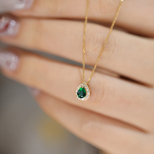 HAUTESS Luxury 18K Gold Diamond Tsavorite Stone Droplet Necklace Pendant