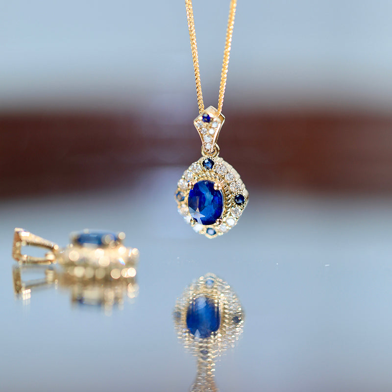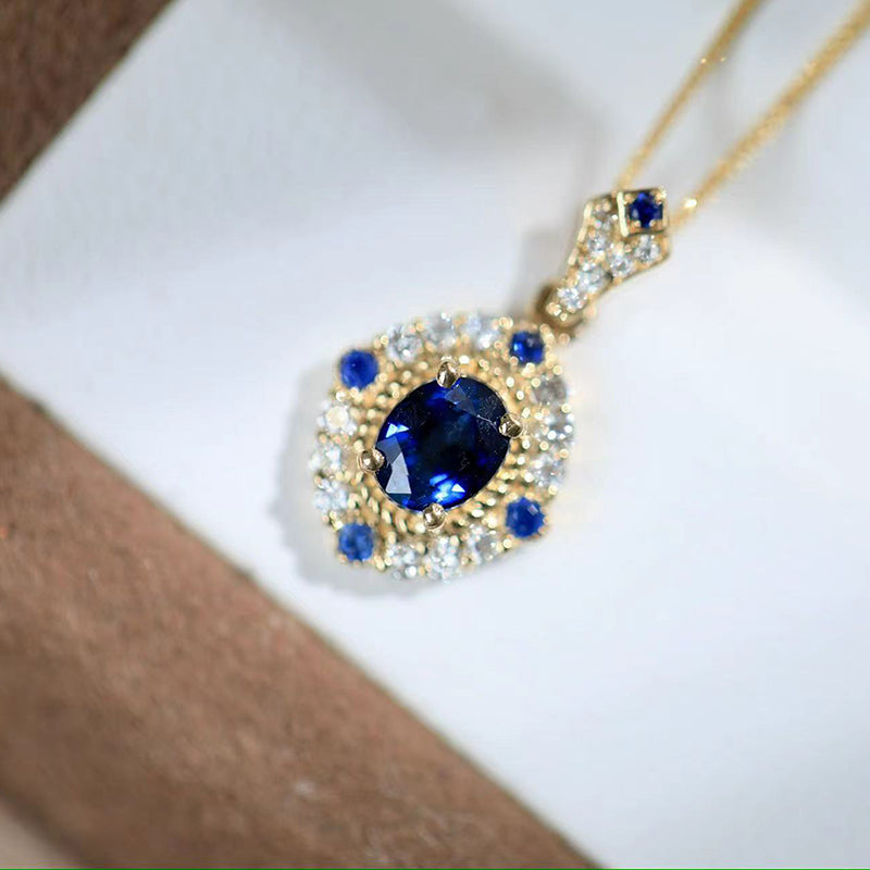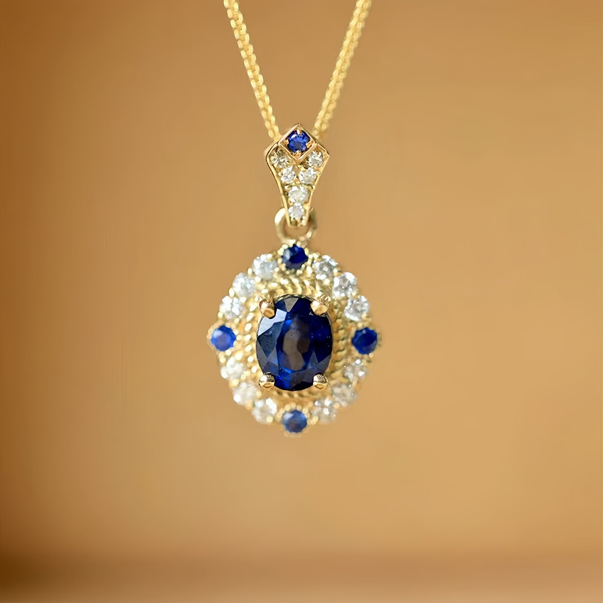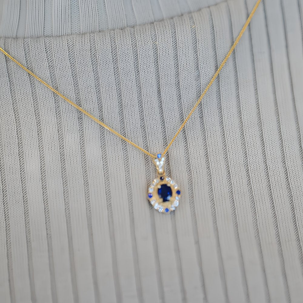 18K Gold Natural Sapphire Diamond Pendant Necklace