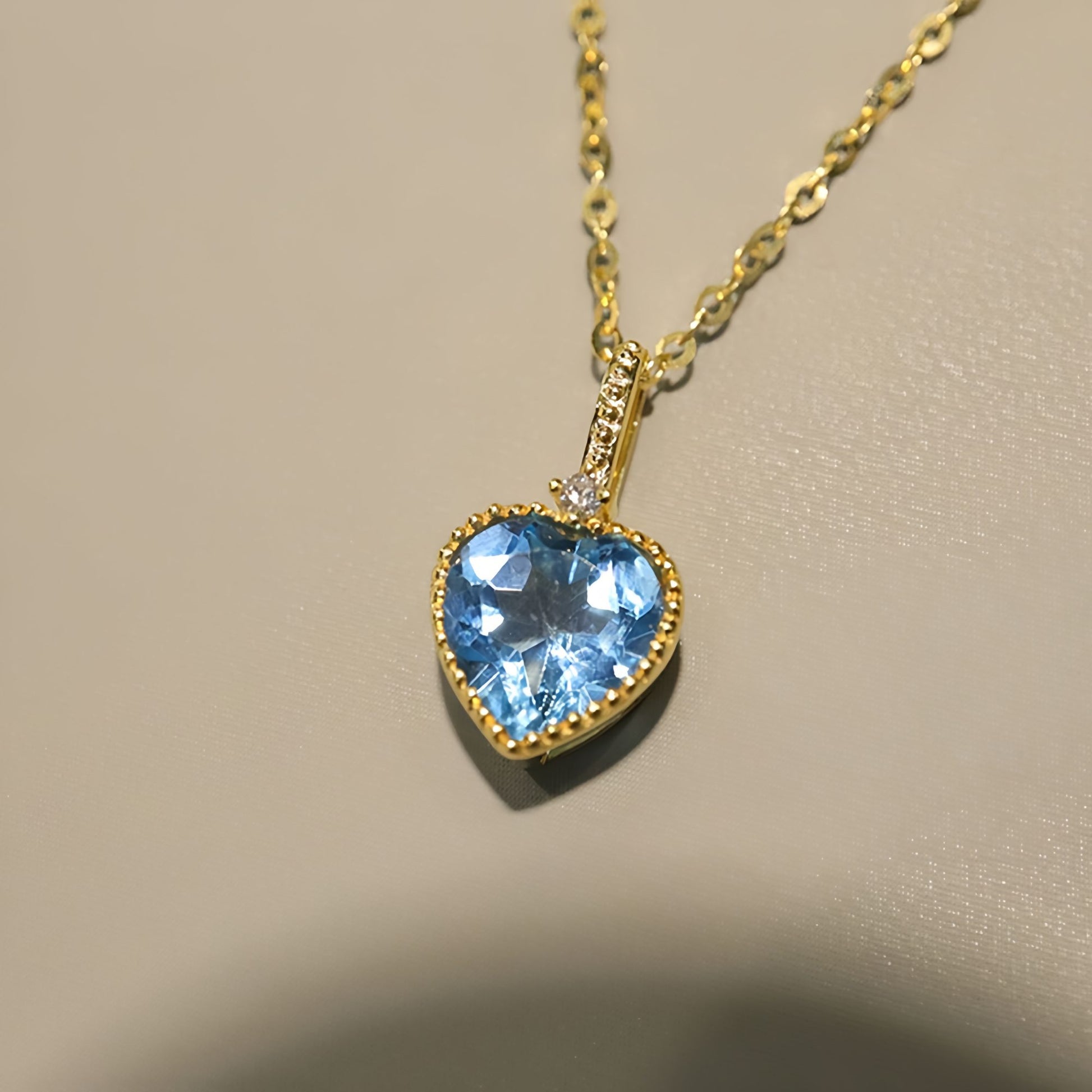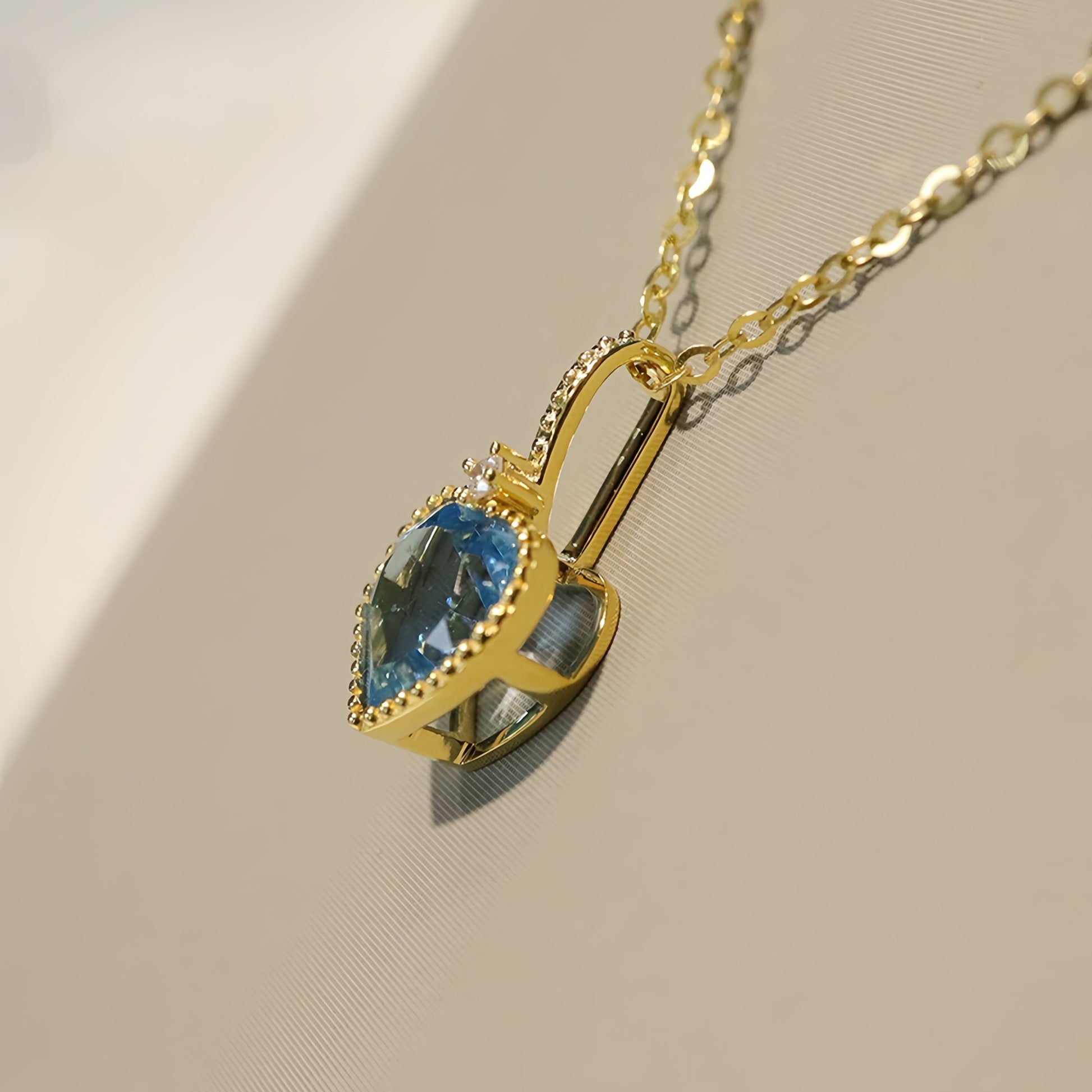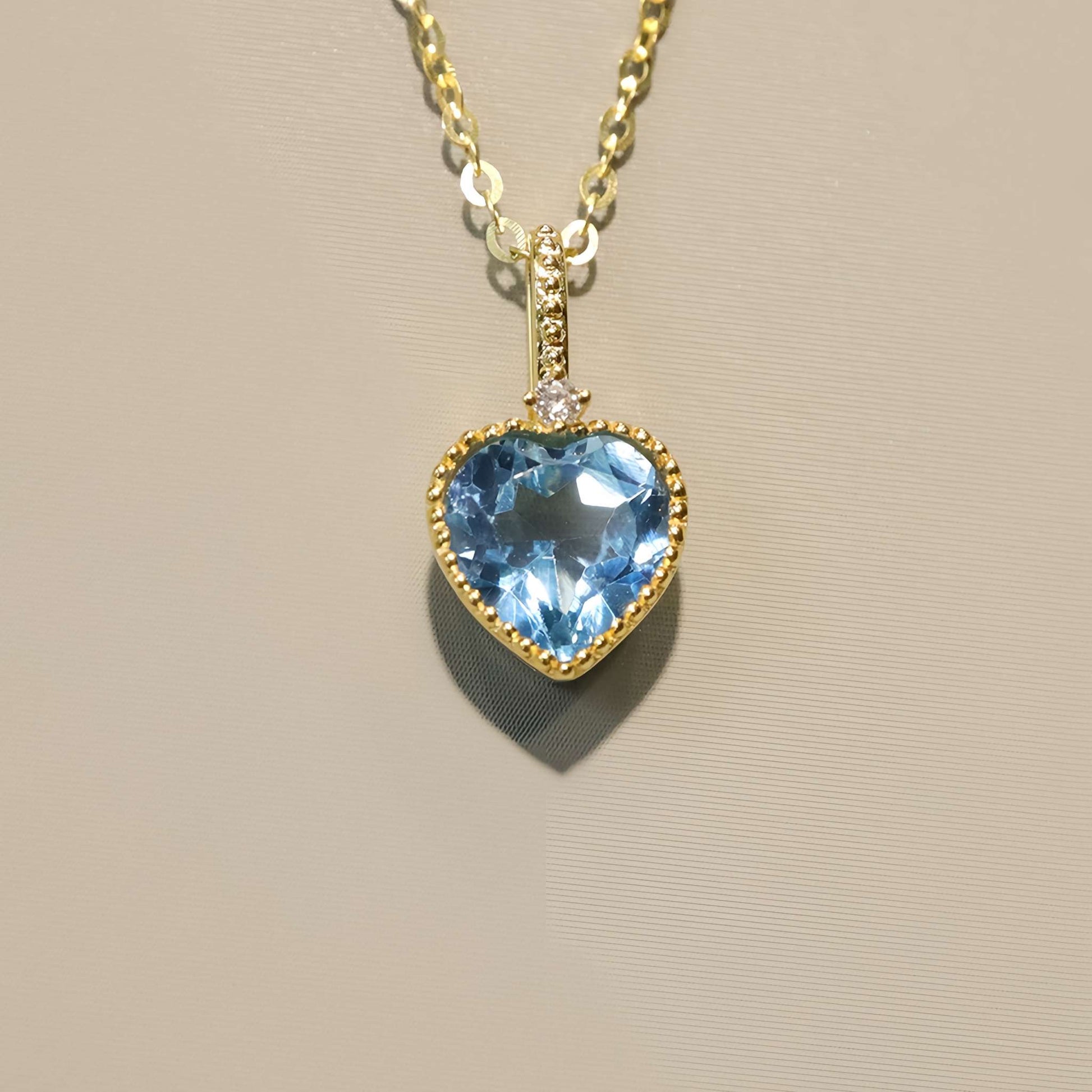 1.3ct love-shaped natural Topaz 18k gold diamond pendant necklace with 0.7ct Aquamarine universal Clasp Pendant