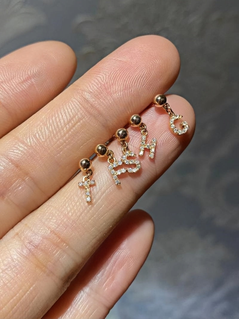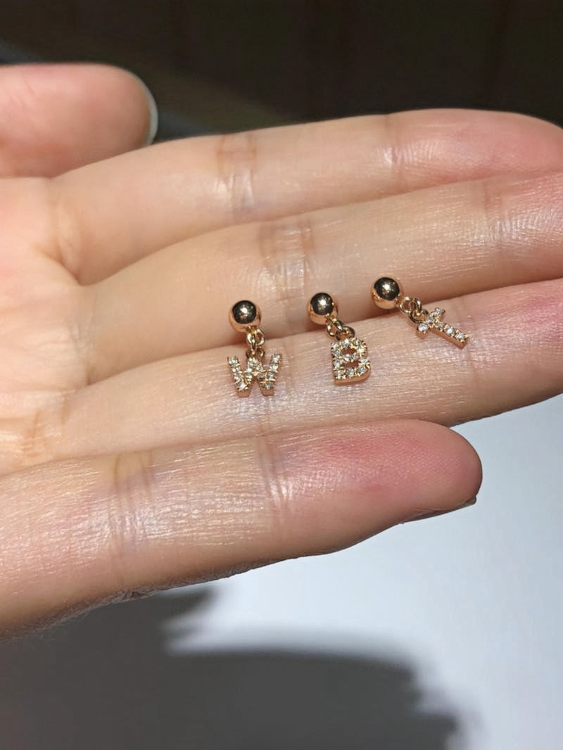 18K Gold Letters earrings with Diamond Name Earrings