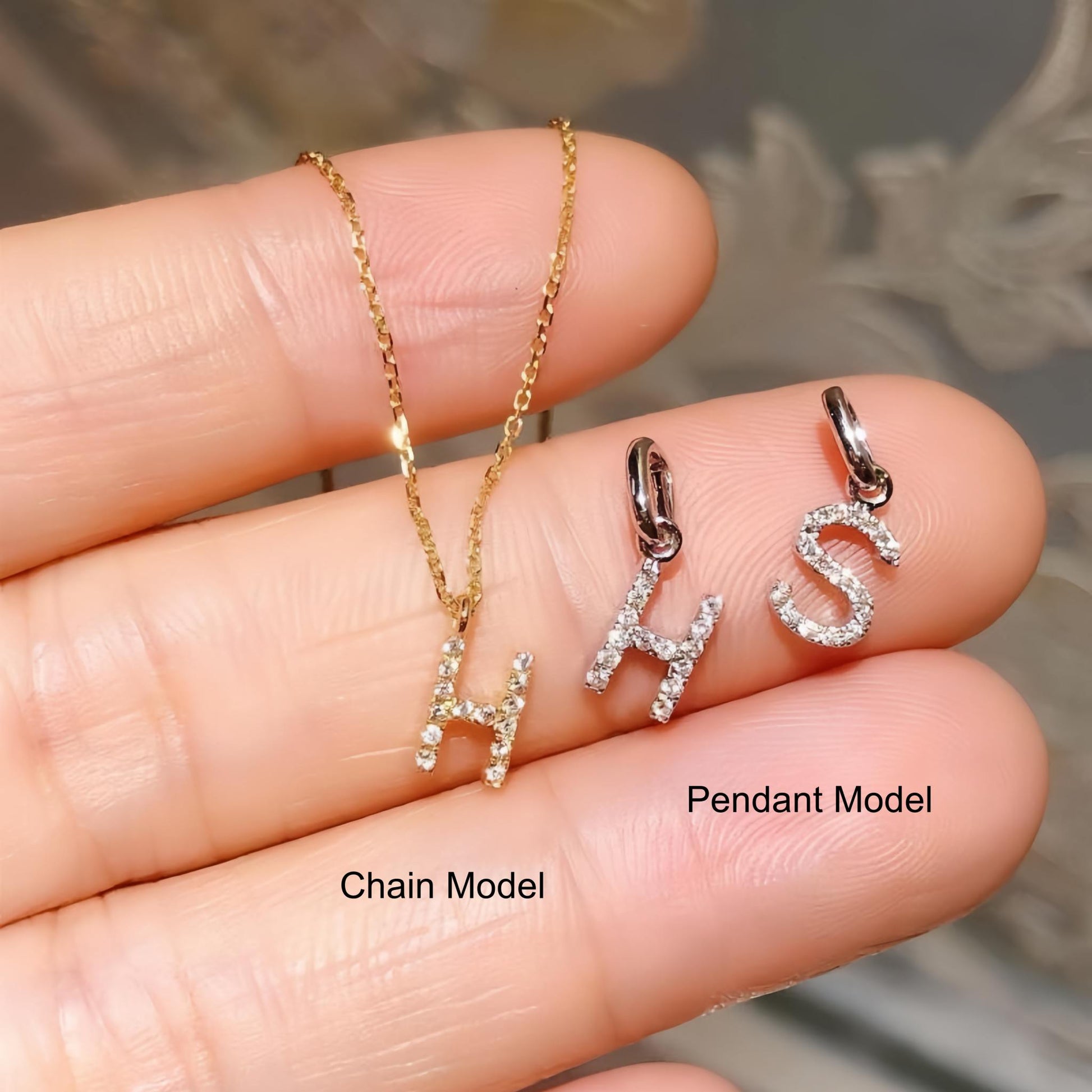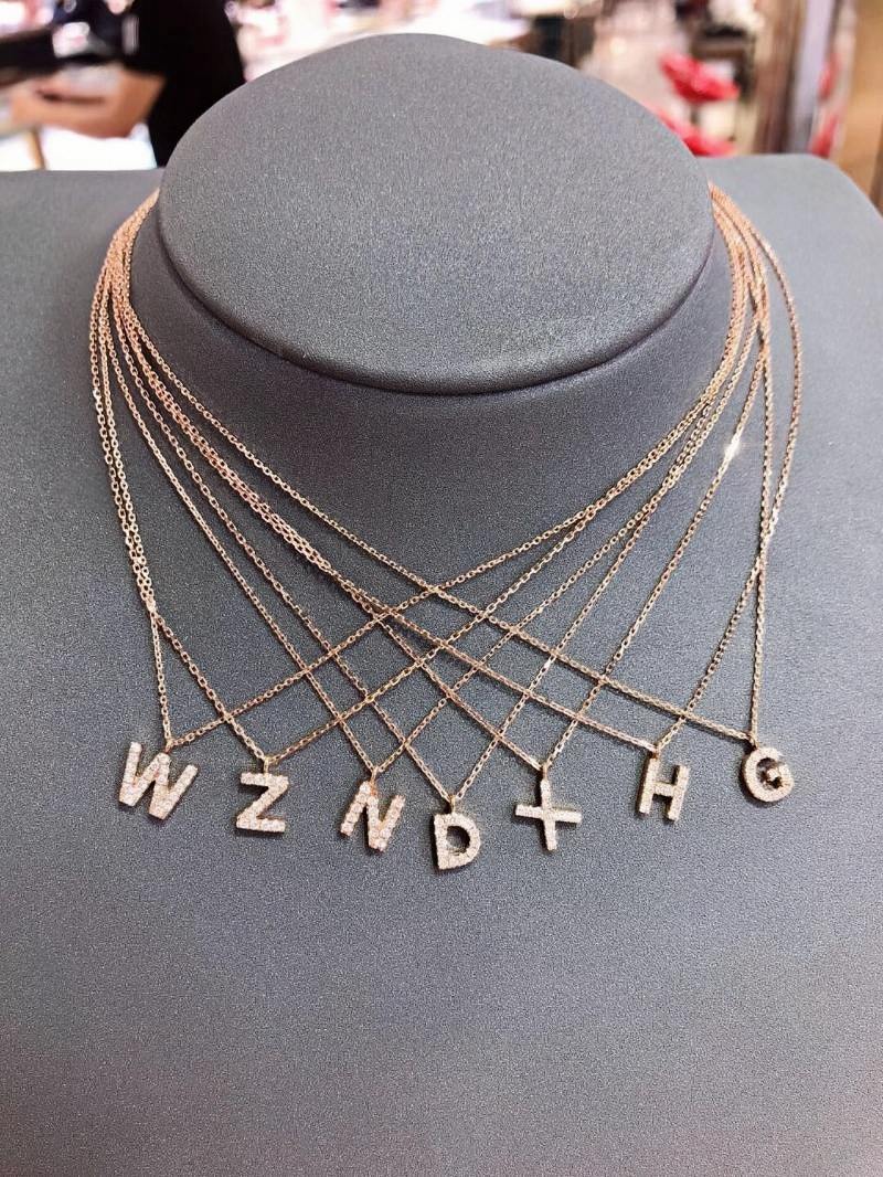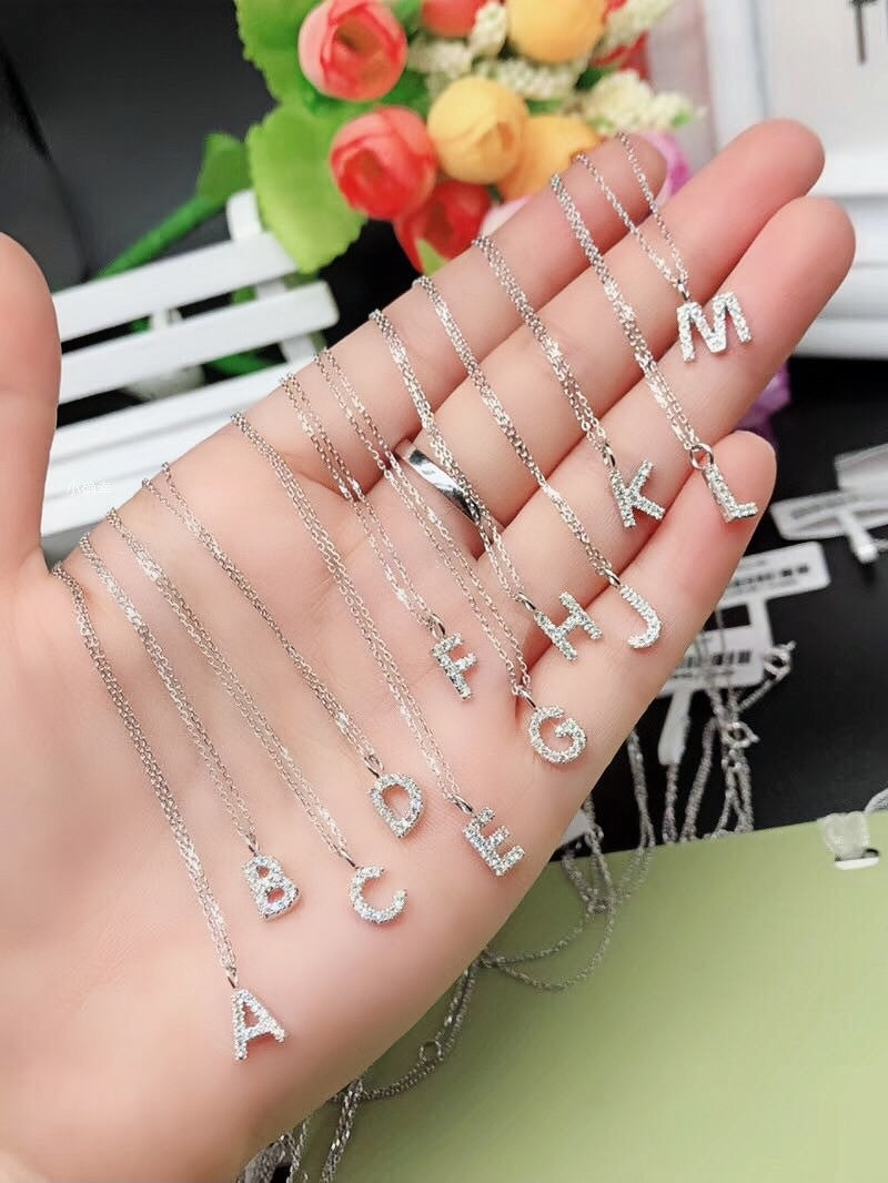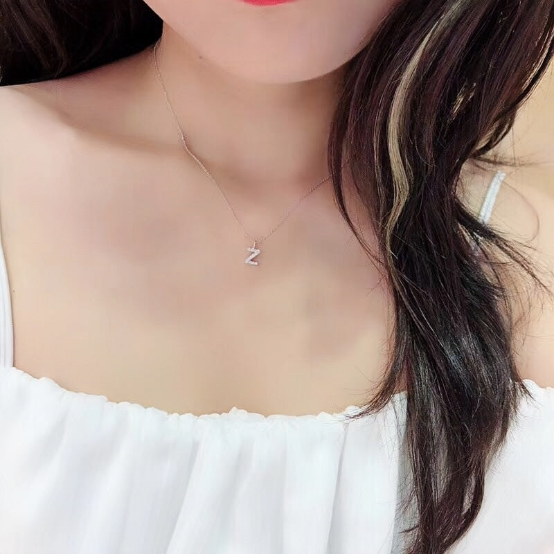 18K Gold Letters Pendant Personalized collarbone Name Necklace with Diamond