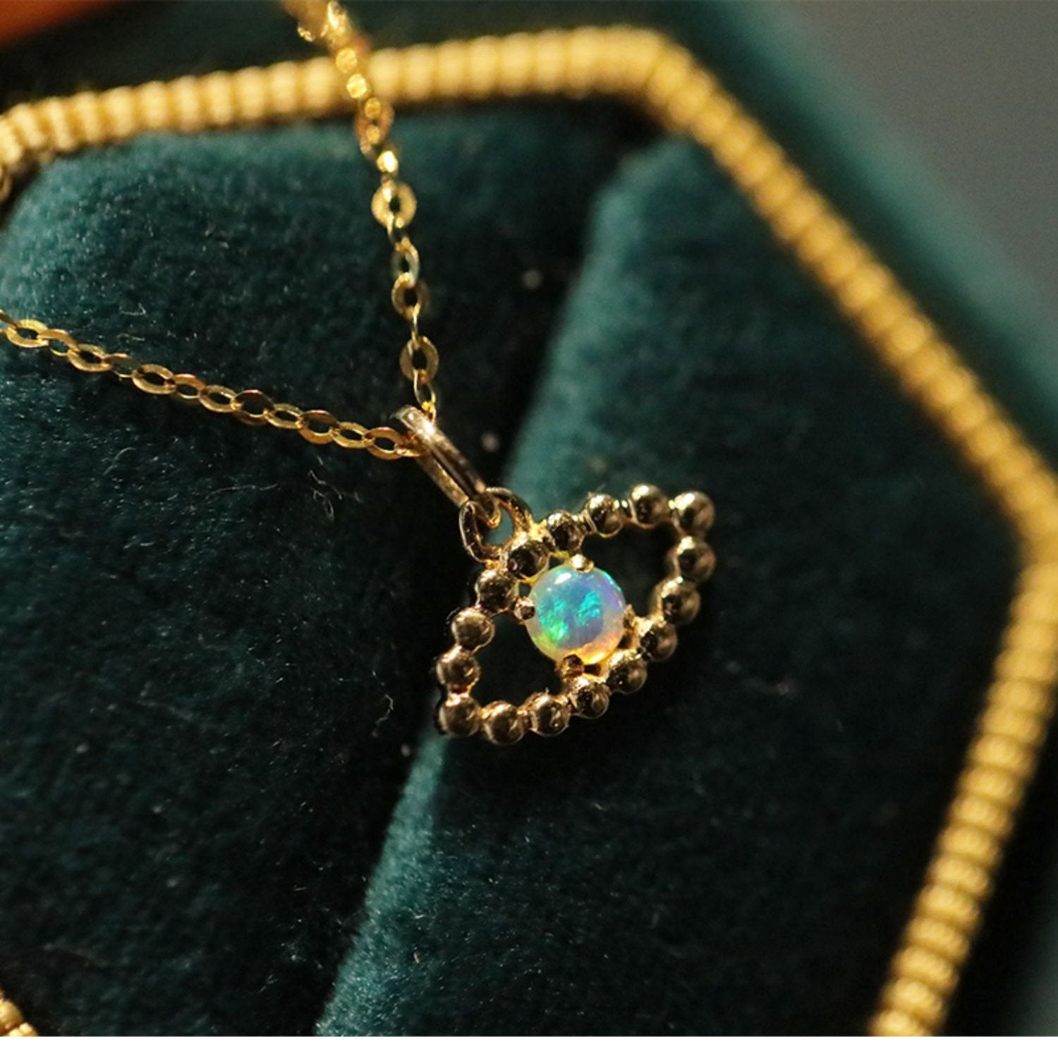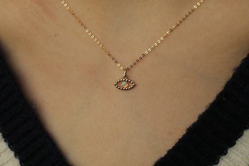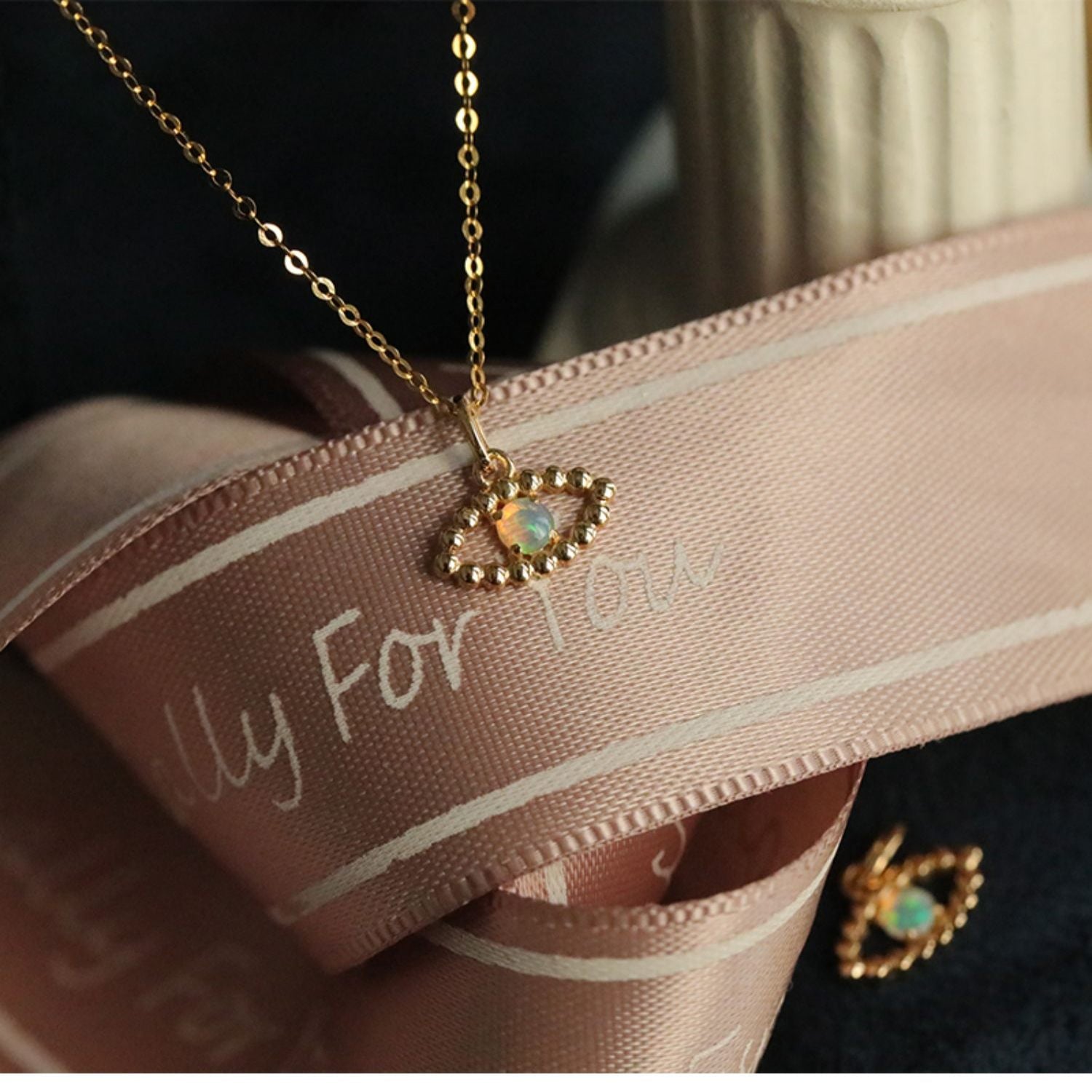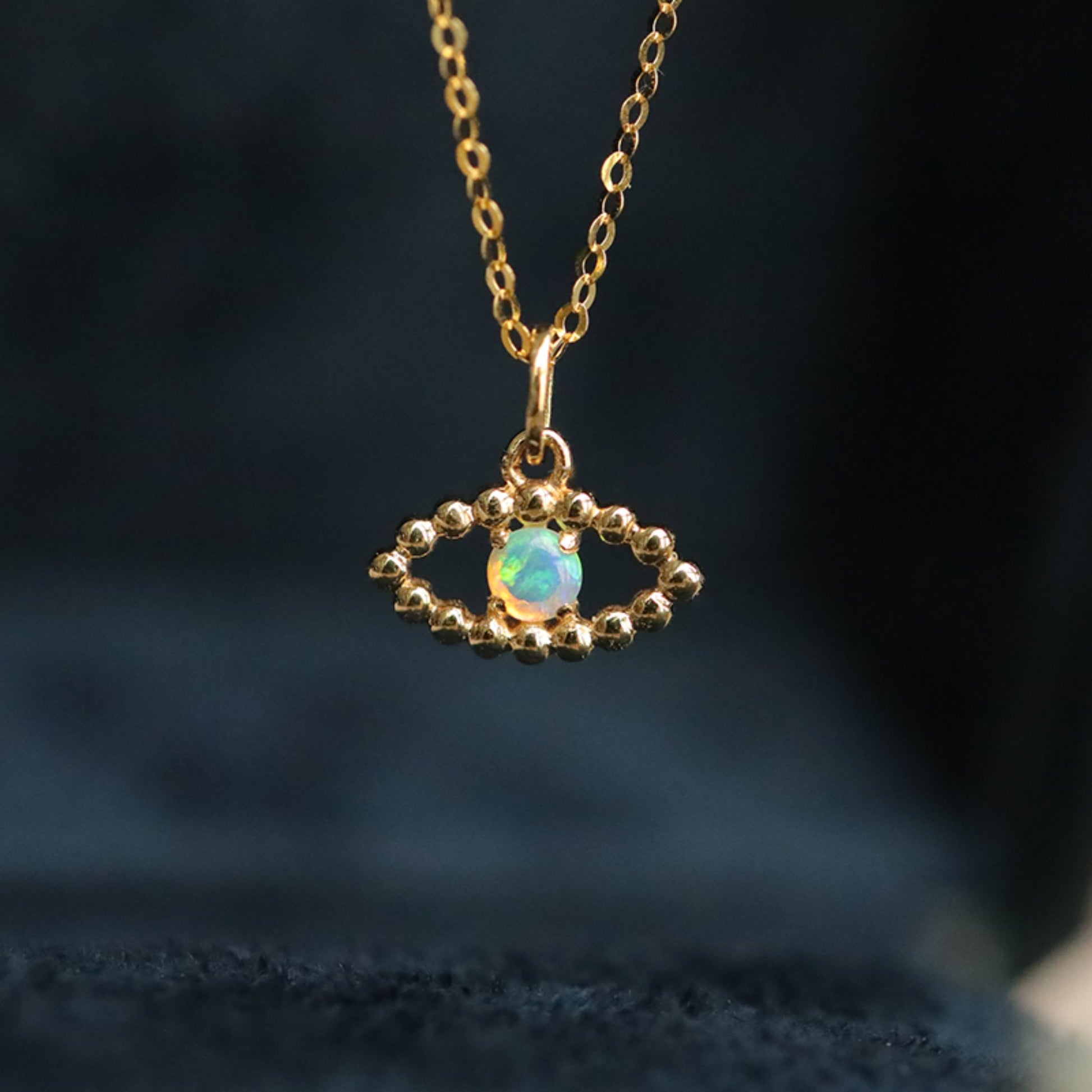 HAUTESS 18K Gold Australia Opal Evil Eyes Desgin Pendant Necklace