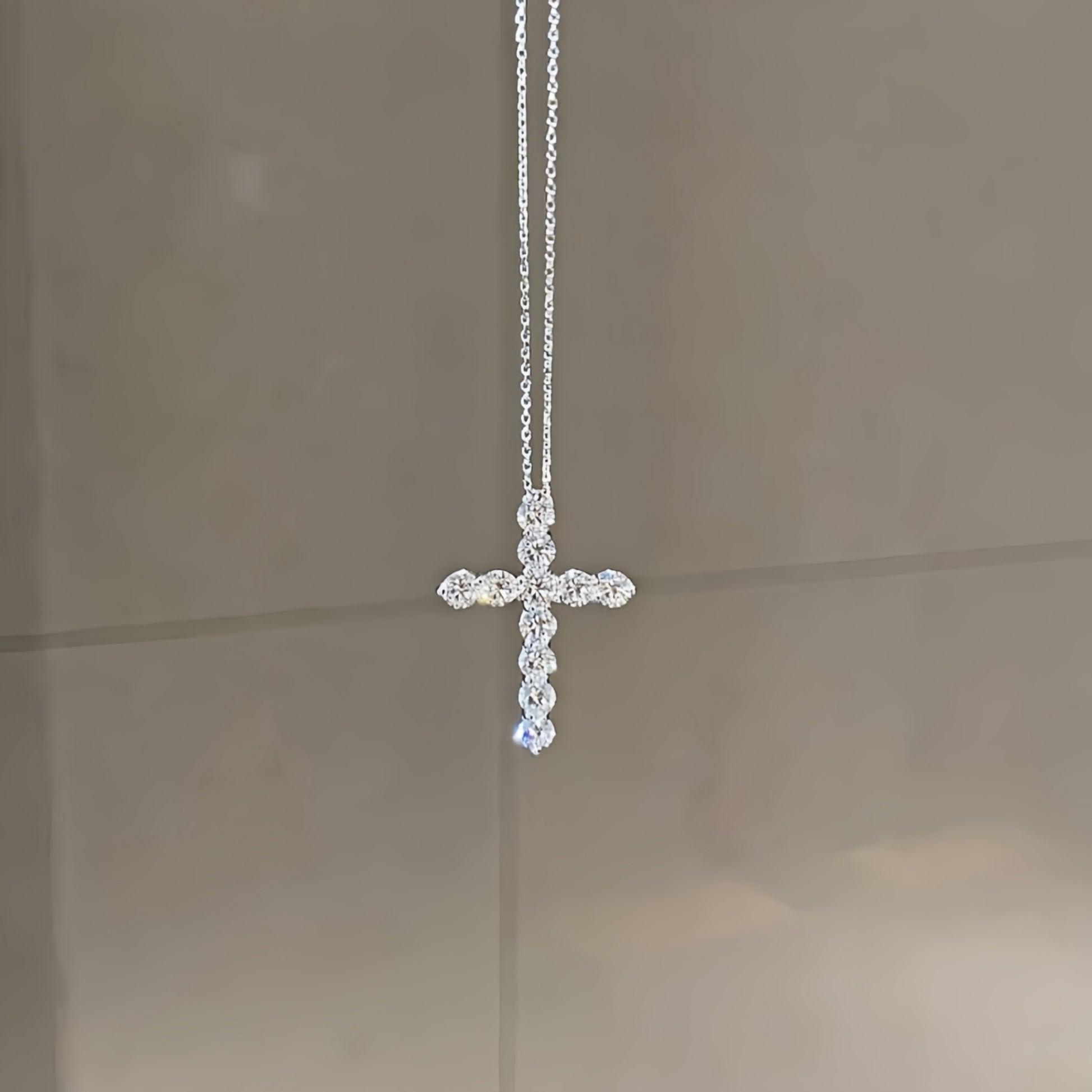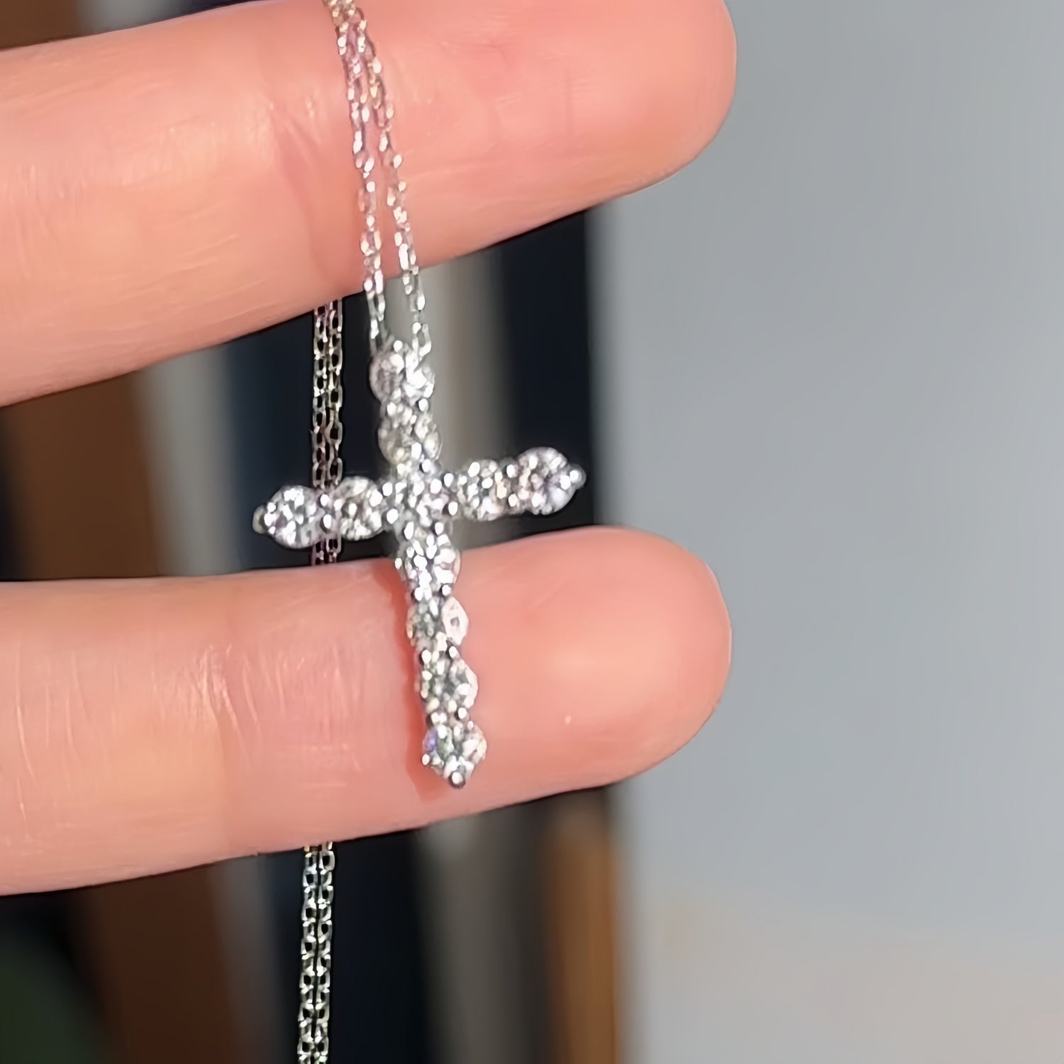 HAUTESS 18K White Gold 1.1ct Total Natural Diamond Cross necklace Pendant for Womens