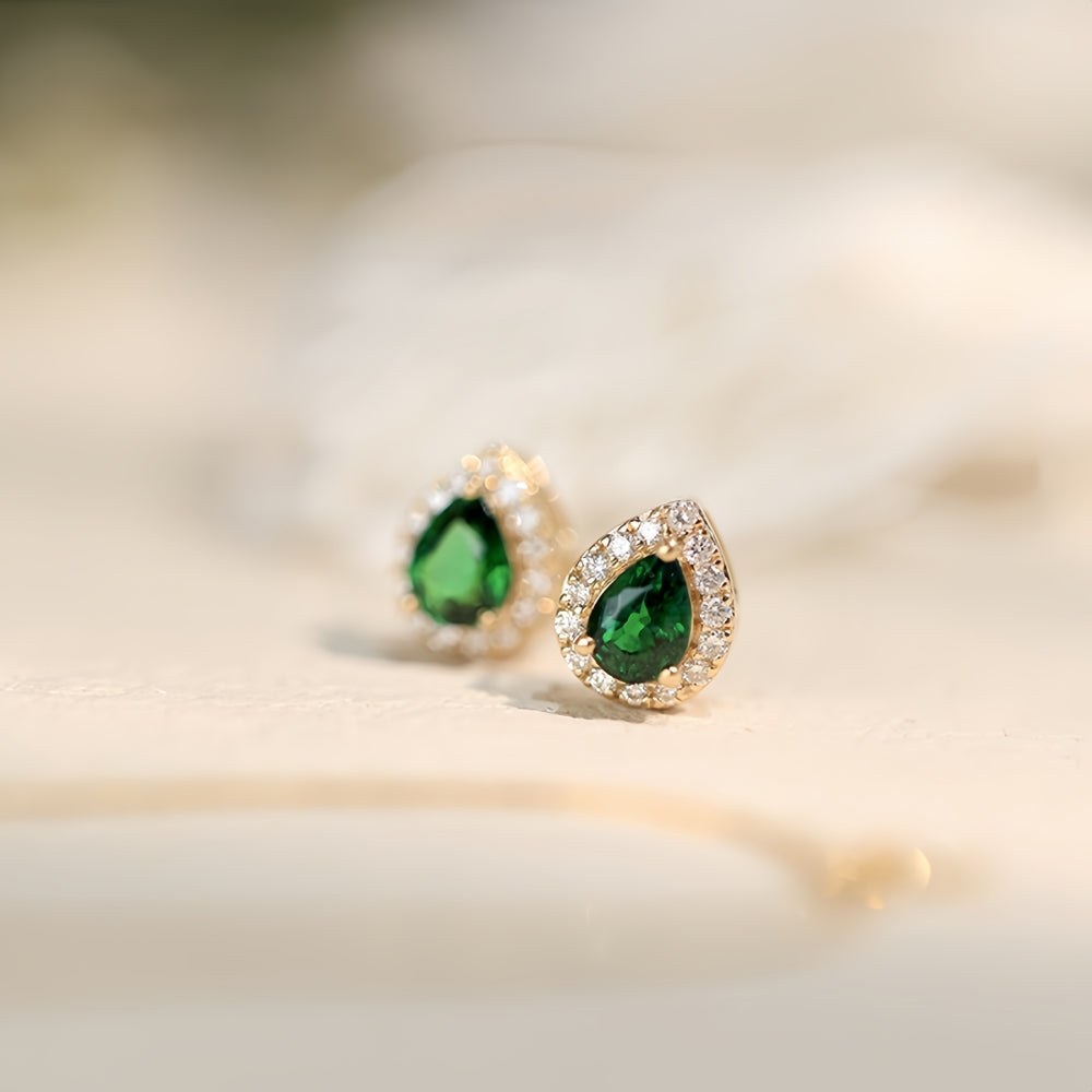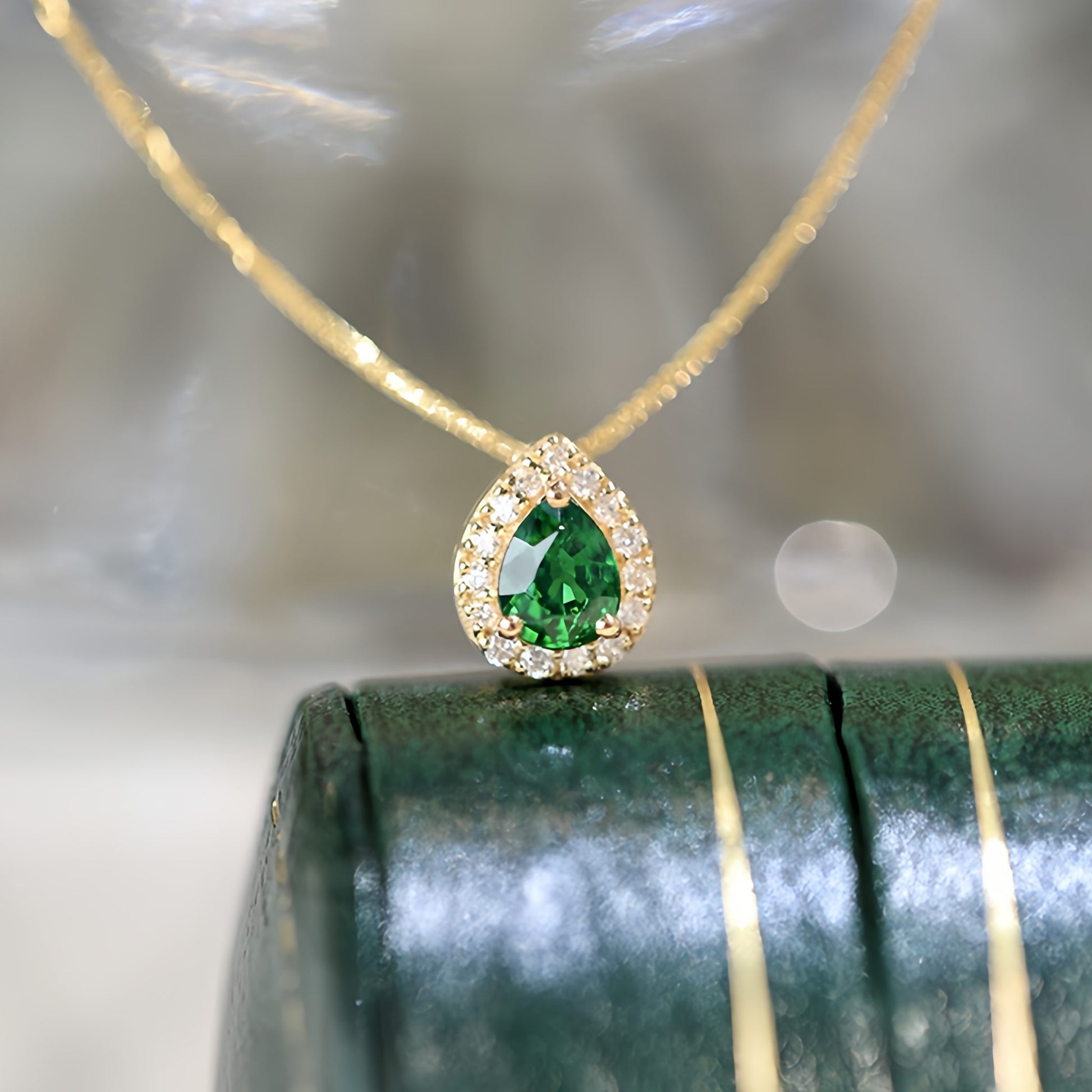 HAUTESS Luxury 18K Gold Diamond Tsavorite Stone Droplet Necklace Pendant